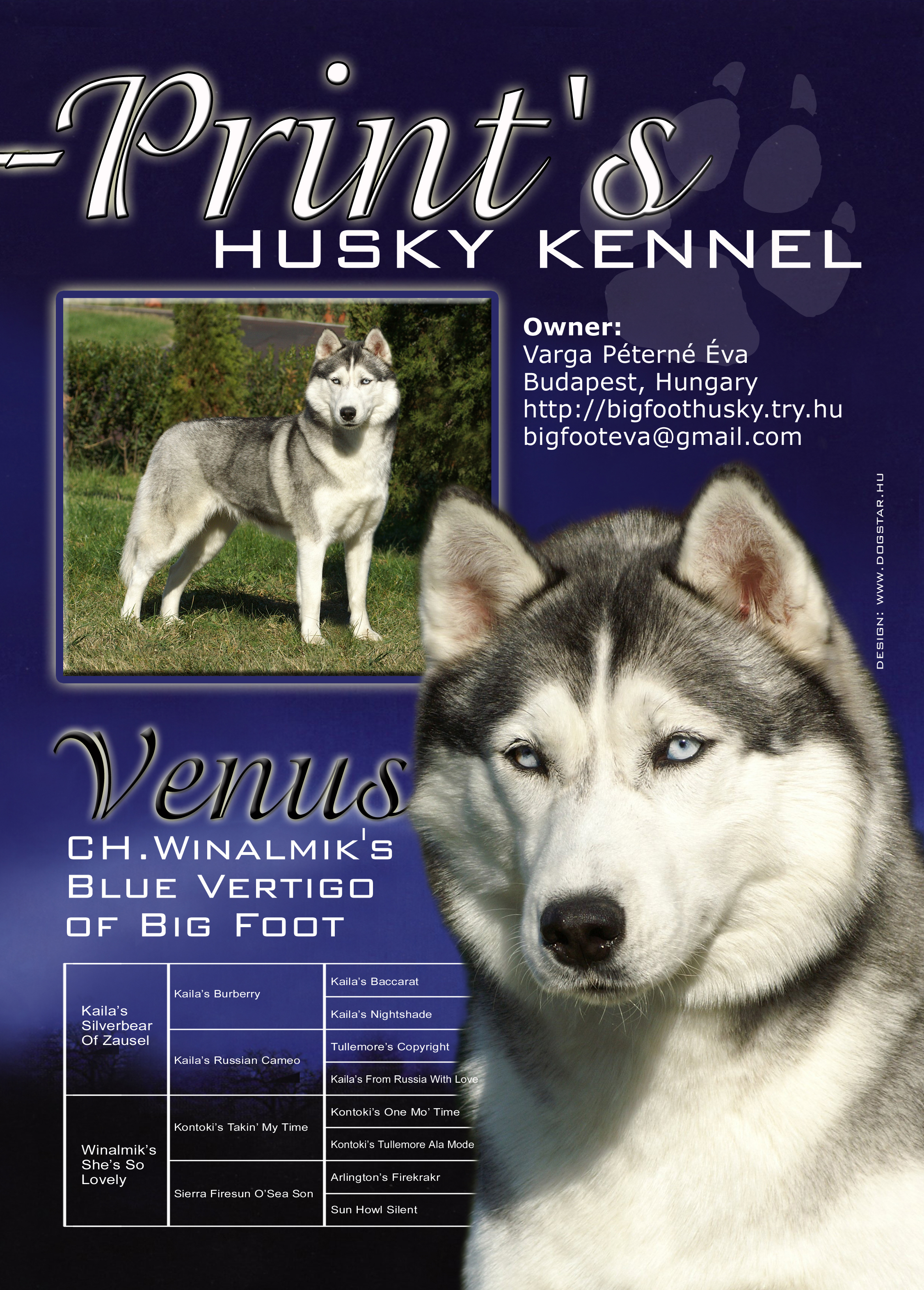 ![]() Made by Dogstar Studió http://www.dogstar.hu/ HCH. B-Casper Jr. of Doghouse Farm Ch. Winalmik Blue Vertigo of Bigfoot HJr.CH. Big Foot Bond James Bond |